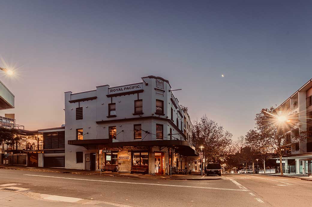 Pyrmont Point Hotel is a distinguished historic corner establishment that has transformed into a vibrant gastro-pub, situated in the heart of Pyrmont, Sydney. Founded in 1850 as the Lands End Hotel, it was renamed the Royal Pacific Hotel in 1886 and ultimately became Pyrmont Point Hotel following a significant renovation in 1996. The addition of a third floor in 1913 conferred the venue with its striking Edwardian character, and the original “Royal Pacific” lettering continues to adorn the parapet. Over the decades, the hotel has undergone numerous visual and structural enhancements, each contributing to its unique charm and rich heritage.